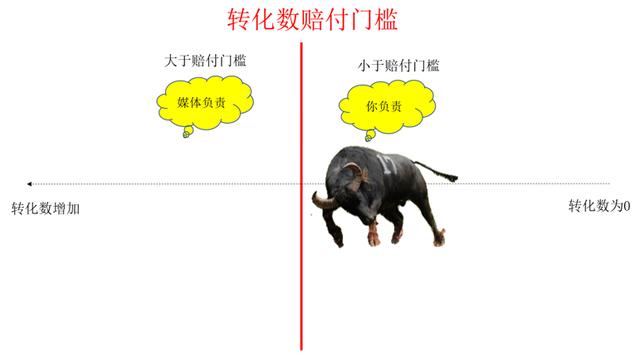 而如果你继续让它花,可能到500块钱的时候有了2个转化,那么看起来你的转化成本是250块钱一个,还是很高,但是你达到了赔付门槛,媒体再返给你给你300块钱,来保你的成本,相当于超成本的钱你没花。(对赔付规则的详细说明见这篇——“怎样薅媒体的’羊毛’”)