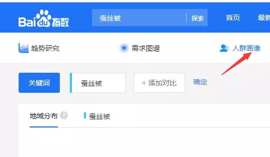 这个百度指数就是我们经常用到的工具,比如我们拿蚕丝被这个关键词看,就能给这个产品有一个清晰的人群画像,涉及他的兴趣,年纪,地域等等