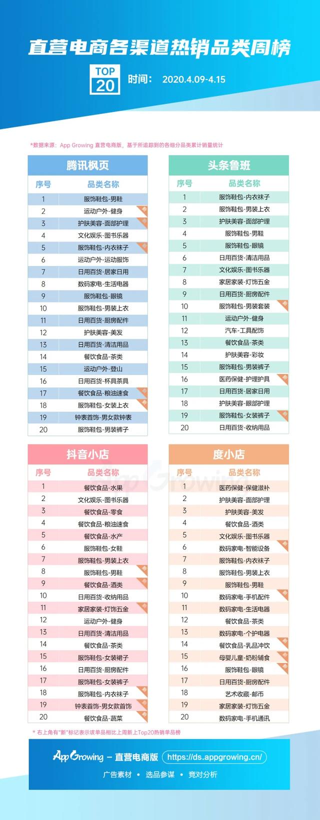 本周(4月9日-4月15日)各渠道哪些品类热销,哪些商品潜力较大?来看看本周二类电商大盘趋势&商品情报吧。