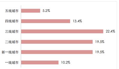 3)地域:从地域来看,位于三线城市的用户最多,达到22.4%。但是一二线城市的用户比例也达到49.2%。