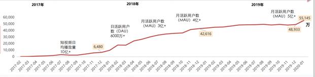 抖音于2016年9月上线,最初是一个专注年轻人音乐短视频社区平台。用户可以通过这款软件选择歌曲,拍摄音乐短视频。抖音拥有强大的KOL和明星资源,同时高度重视产品运营,用户增长速度惊人,2018年6月,抖音对外宣布日活超过1.5亿,2020年1月,抖音宣布日活跃用户超过4亿,月活跃用户超过5亿,此时距离产品上线还不到4年。