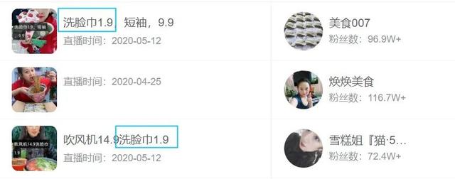 从直播的标题可以看到,部分直播间会把“洗脸巾1.9”作为宣传噱头,用“1.9元”的超低价将观众吸引到直播间。