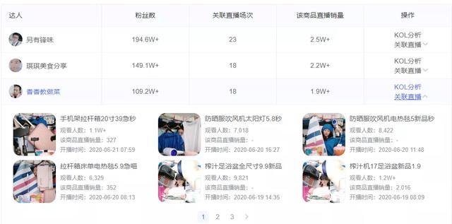 从推广趋势来看,这几天均有超过20位达人进行推广,其中不乏另有锋味、琪琪美食分享、香香教做菜等数位粉丝超过100w的KOL,并关联对应KOL期间的多场直播,是其直播销量的重点保障。