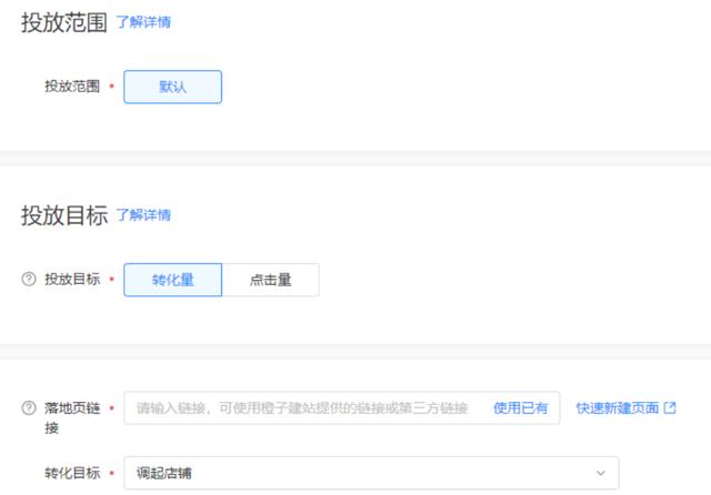 (2)选择推广目的,支持以下三种推广目的: