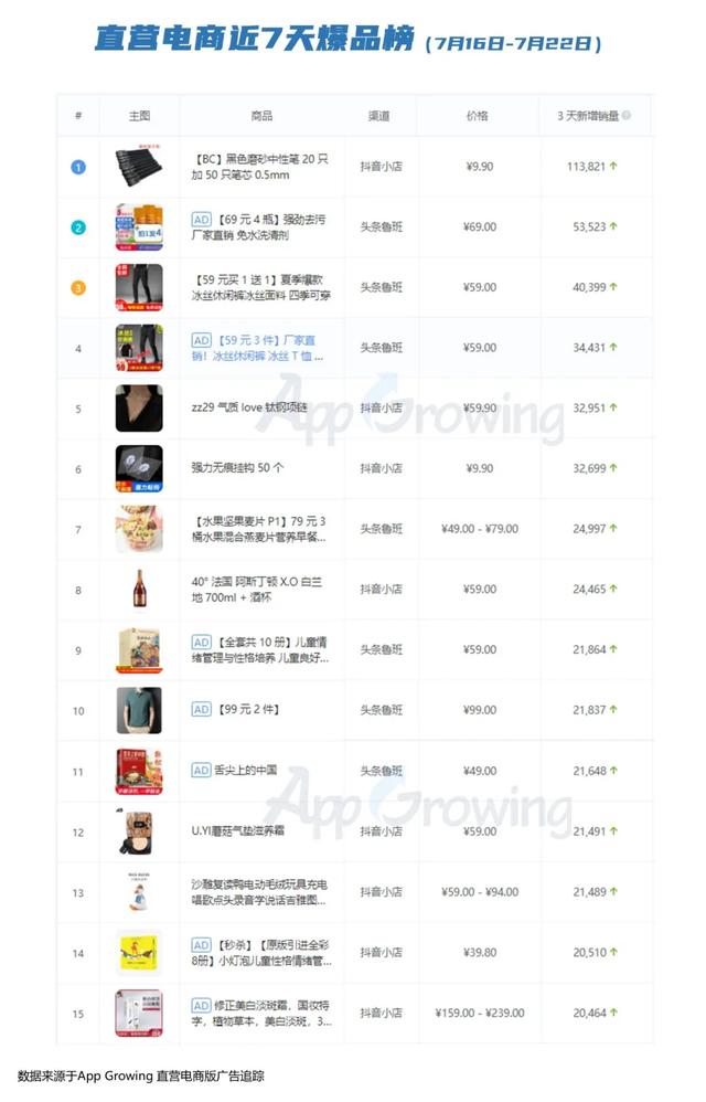 基于上述各渠道热门单品榜及直营电商广告主所关注的重点单品情况,近7天压缩毛巾、车载吸尘器、肚脐贴等一系列单品深受广告主关注,以下将分析这三大热推单品的推广概况。